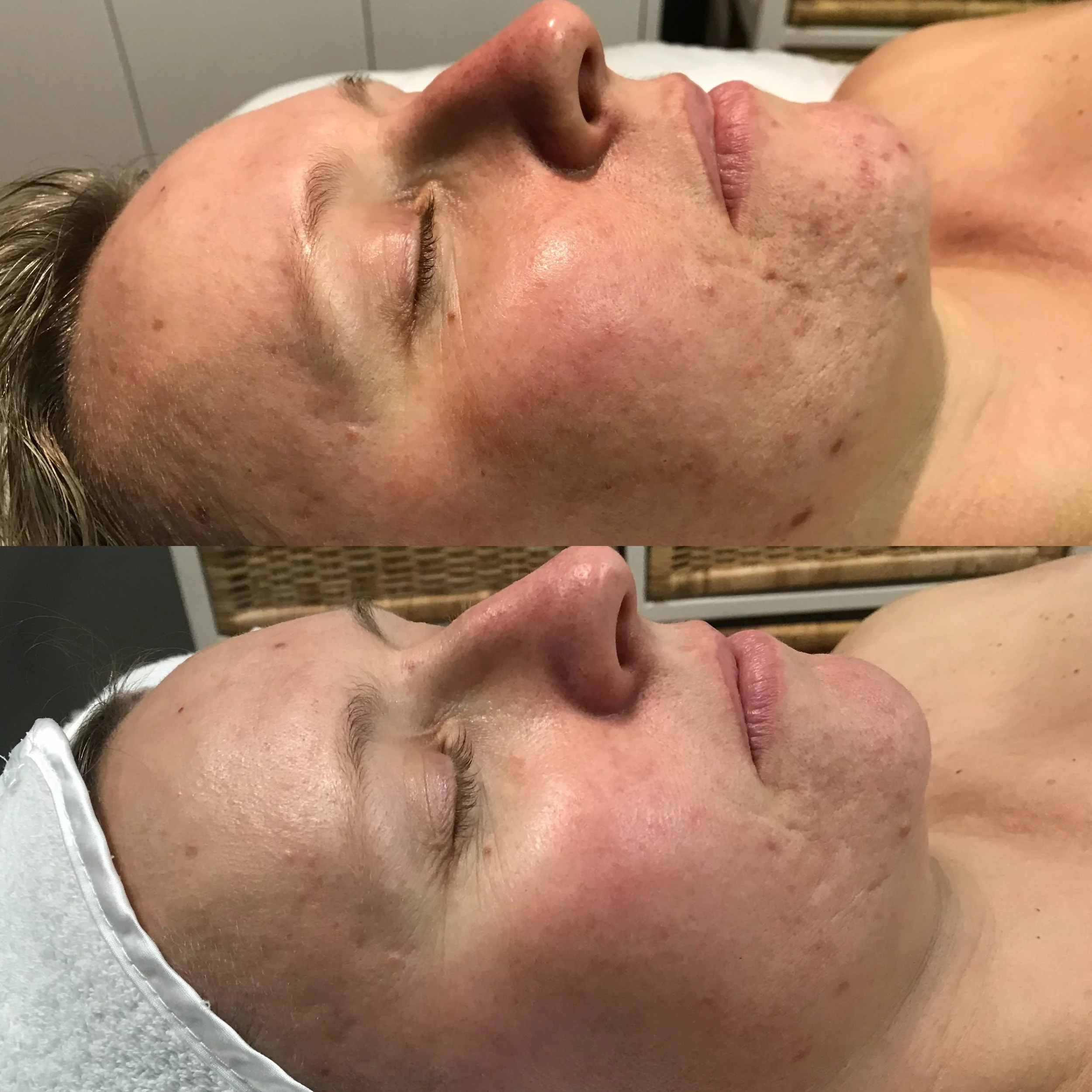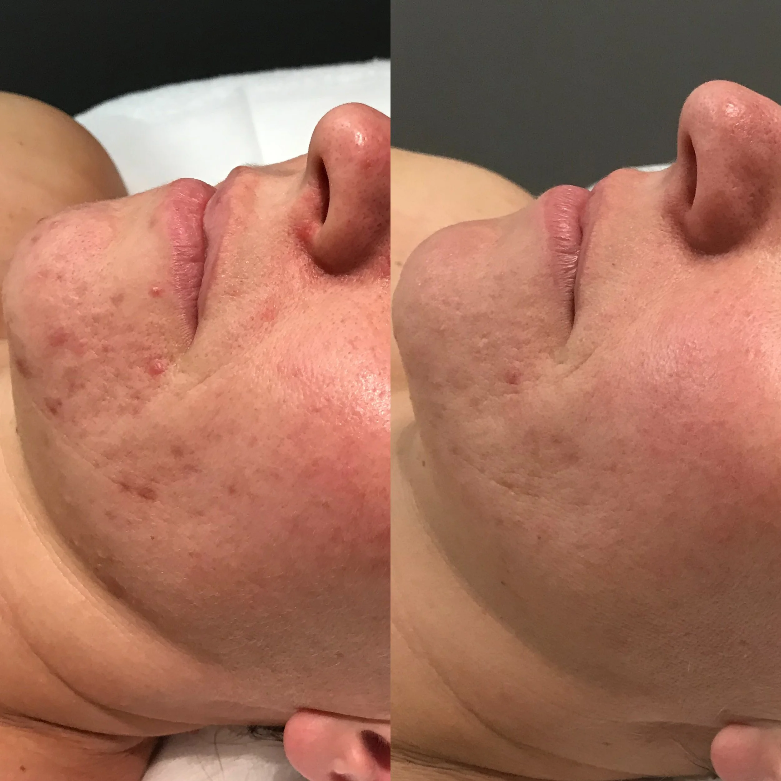 “I used to get very large pimples over my chin area. As an adult in my 30’s I felt very self-conscious when the pimples came up. My skin was also scarred and “a good skin day” was rare. I began DMK enzyme treatments and took EFA tablets and noticed my skin start calming down. After 6 months of treatment I rarely have breakouts and the scarring and redness from previous damage has gone. I have received compliments from close friends and family. My favourite product is actrol powder.”